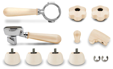 El kit de actualización de arce está diseñado para personalizar LELIT Bianca PL162T. Consta de dos pomos para varillas de vapor y agua caliente, un pomo para la palanca de extracción, una paleta y cuatro pies. También está equipado con dos portafiltros con mangos de madera de arce: sin fondo y de 2 vías con boquilla LELIT58 Coffee Slide. Incluye instrucciones de montaje y todos los componentes necesarios (filtros no incluidos).