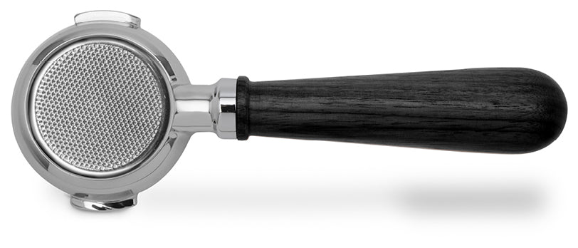 Portafiltro sin fondo con mango de madera de nogal negro. Incluye filtro de acero inoxidable de 2 dosis (18-21 g), en colaboración con IMS. Para máquinas con grupo LELIT58.