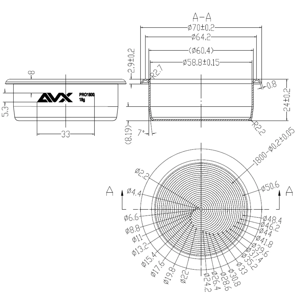 La canasta de filtro de precisión AVX PRO 1800 (58 mm/18 g) está diseñada para brindar extracciones de espresso más uniformes y repetibles en máquinas de espresso comerciales y de consumo profesional.